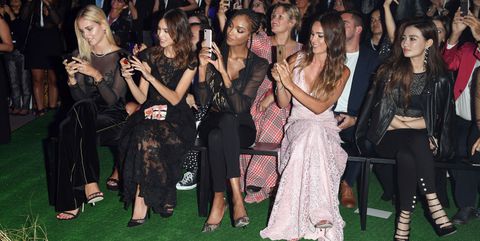 Los asientos VIP se llenaron de it girls de todo el mundo, desde italianas hasta españolas. Y es que las españolas Gala González y Belen Hostalet pusieron el acento a las noches. Vistieron de estilismos negros protagonidos por piezas del desfile. Gala llevó un sujetador sin tirantes con escote en forma de corazón al que agregó una americana de cuero y Belén prefirió sumar a su traje de chaqueta un body con el mismo tipo de abertura frontal. De hecho, no fueron las únicas que llevaron piezas de la colección, Chiara Ferragni se apuntó también a este estilismo llevando una pieza transparente con dos dibujos en forma de tigre que le cubrían lo necesario.