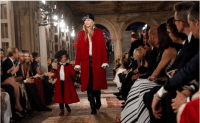 Desfilando pudimos ver lenejuelas, sus jurseys con la bandera de Estados Unidos, el Patchwork italano (símbolo de la casa)… Aunque también unió telas, como las lentejuelas, el cashmere y broches de cristal, los tres principales elementos sobre los que gira la firma. También vimos la unión de los roquero y lo «royal». Pero lo que más gustó a los asistentes, fueron los trajes a juego entre madres e hijos, modelos que seguro que llegan a las casas de las famalias, como a la de Chiara Ferragni y a su hijo.