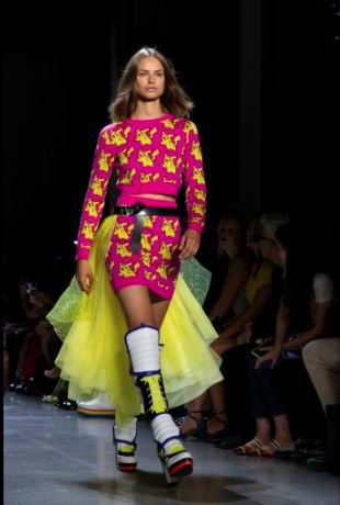 Jeremy Scott: es el culpable de que hayamos vuelto a caer rendidos a Pikachu. Sus trajes fueron increíbles, pero la prenda que más deslumbró fue su sudadero y vestido de este Pokemon. Con un color fucsi de fondo, consiguió que todo el mundo quisiese una igual. Tanto para hombres como para mujeres, entre la purpurina metálica de los labios, que está siendo una obación y queda increíble, los pantalones rotos, los estampados y las sudaderas, su conjunto top y falda y Pikachus clonados son los más aclamados por los fans de la moda para que las firmas «low coste» creen una igual. Pero también destacó su desfile por ser uno de los más polémicos, ya que muchas de sus prendas contenía mensajes que hacían llamamientos a la manifestación y a la protesta contra políticos, también contra el acoso y abuso sexual a mujeres.