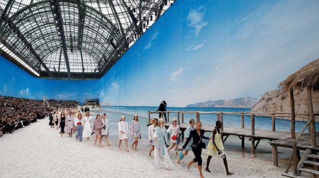 La puesta en escena del Grand Palais se mimetizaba con la colección que lucían las modelos. Una playa artificial fue la escogida para que paseasen sin tacones y descalzas, presumiendo de silueta perfecta y de trajes millenials.