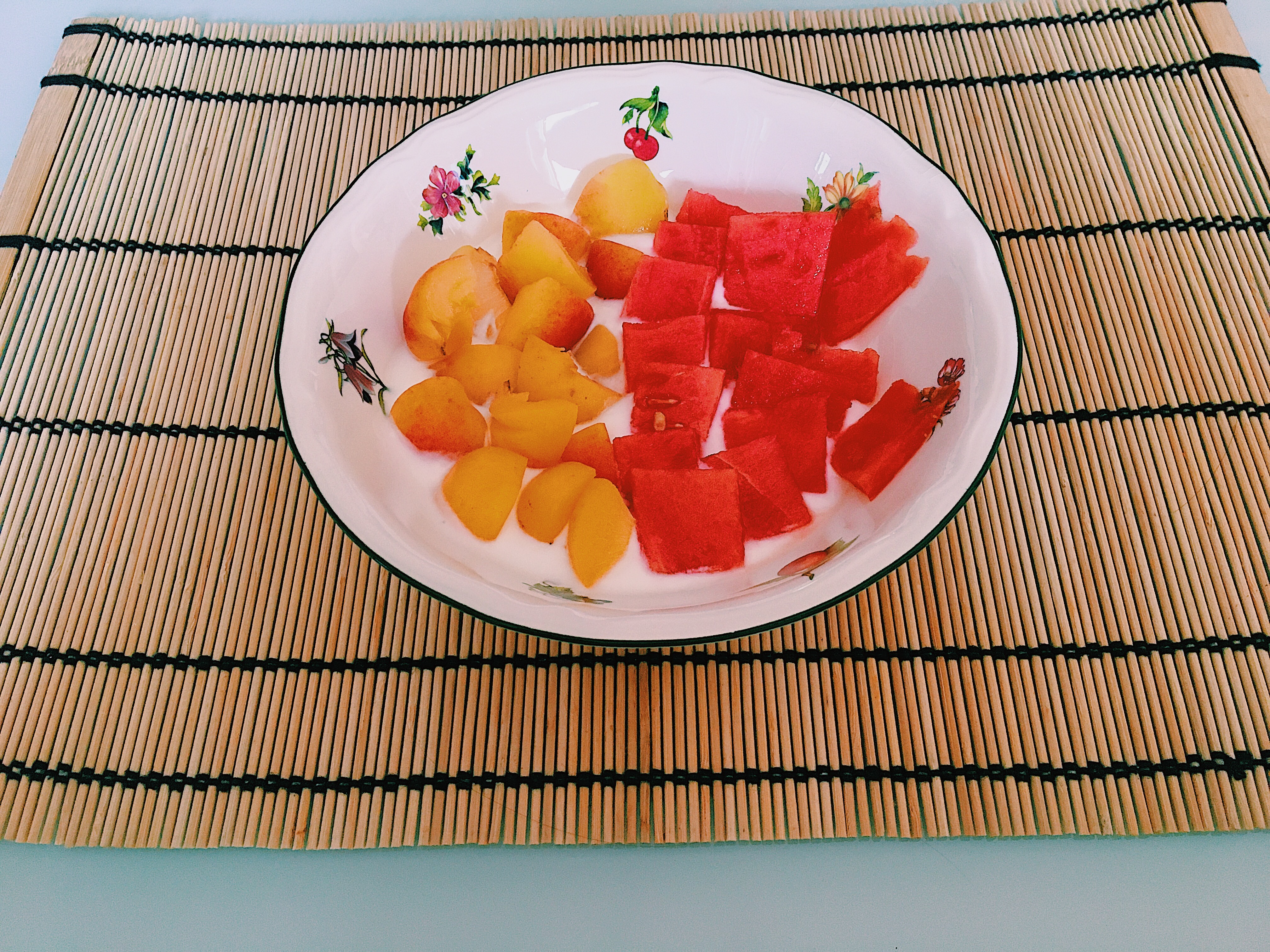 Para terminar la semana, nos refrescaremos el despertar con dos frutas propias del verano: la sandía, con un alto porcentaje en agua, lo que nos permite una alta hidratación por la mañana, y por otro lado el albaricoque, que nos ayuda con los problemas de corazón (como la hipertensión), combate la anemia y también es un suave laxante contra el estreñimiento. De base, tenemos yogur natural cero azúcares, y así, el toque dulce nos lo proporciona la sandía. Sin embargo, si con el albaricoque no estamos muy convencidos, siempre podemos añadirle por encima chocolate natural, un alimento que también nos aporta muchas proteínas y vitaminas si lo tomamos en buenas cantidades y productos correctos, puesto que no es lo mismo comer un chocolate 90% natural que una tableta no tan natural.