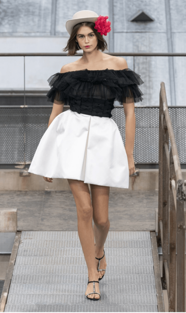 Virgine Viard sigue en su línea y manteniendo la escena de la Maison Chanel, no olvidando sus orígenes. Pues no faltaron ni el tejido tweed, ni el binomio blanco y negro, ni la bisutería XXL. Pero a pasar de mantener la tradición, la heredera de Karl Lagerfeld ha plasmado un poquito de su esencia en el desfile. Tal es así, que hemos podido ver faldas más cortas y prendas metalizadas, dando un estilo fiestero y juvenil al desfile. Dos adjetivos que describen a la perfección lo que fue este desfiles.