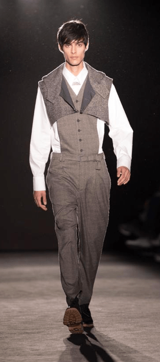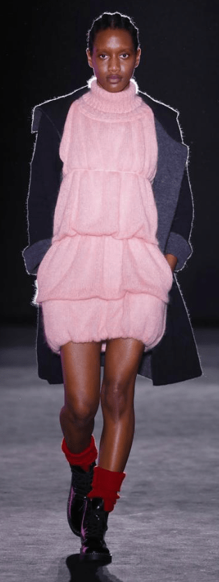 Desfile Joaquin Verdú, presentando su nueva firma «Vu» en la que muestra su trabajo del punto con una colección uniese de jerséis, faldas, chaquetas y pantalones. Destacaron los jerséis y vestidos con volantes en cascada (como el de la foto de la izquierda).